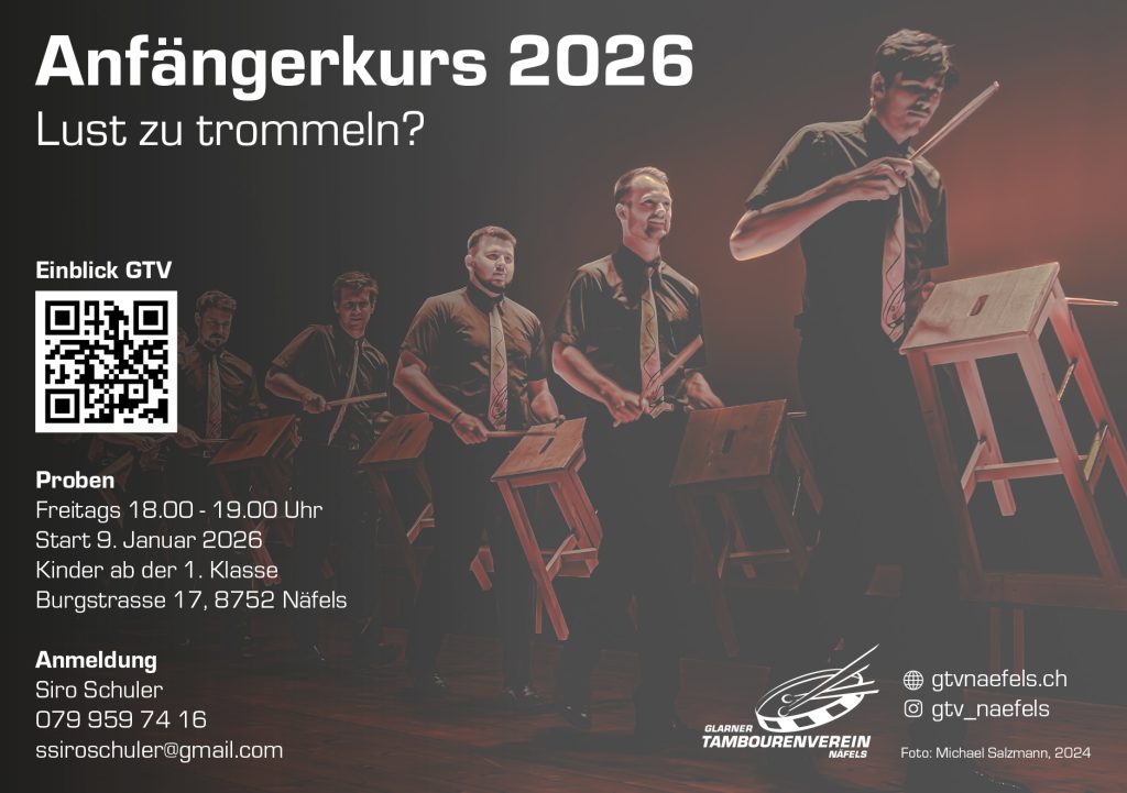 Der Glarner Tambourenverein Näfels startet im Januar 2026 wieder mit einem neuen Anfängerkurs für Kinder ab der 1. Klasse.
